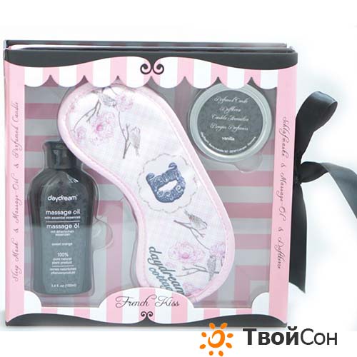 маска для сна, аромасвеча, массажное масло